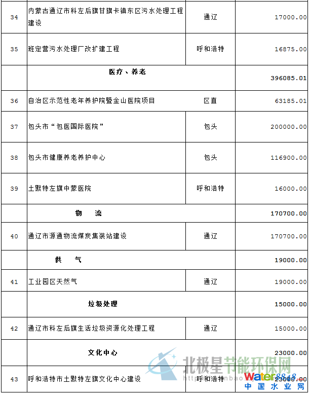 近日,北極星節(jié)能環(huán)保網(wǎng)從內蒙古自治區(qū)網(wǎng)站獲悉,內蒙古自治區(qū)推出第一批43個PPP示范項目,總投資730億元,涉及交通運輸、公共基礎、污水處理、垃圾處理、生態(tài)修復等多方面內容,具體內容如下: