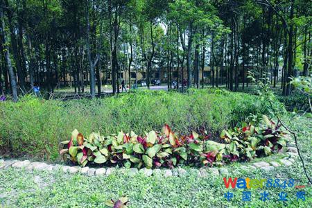 閘北區(qū)長臨路上共康四村內(nèi),有一片綠地,占地約1.3萬平方米,它就像一塊海綿。最初它是建于上世紀90年代的一個林帶,此后改建成了綠地。閘北區(qū)綠化管理中心負責人告訴晨報記者,由于綠地環(huán)境不佳,去年下半年開始,閘北綠化部門對它進行了改建,改建過程中應(yīng)用了“海綿城市”的理念“雨水花園”。工程于今年4月竣工,“整個綠地低于地面線50厘米左右,成為一個低洼綠地,綠地中一個約1000平方米的池塘被改建成濕地,如此一來,綠地就成了一個大型蓄水池,下雨時先吸水,然后通過樹木、土壤等的自然滲透以及徑流,最終分流到雨水管網(wǎng)。”