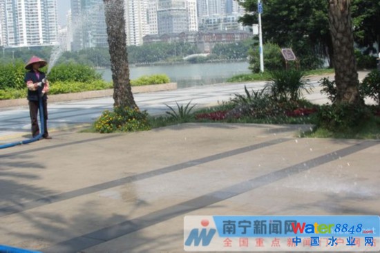 “園林工人用水槍往廣場上噴水,水沒有積在地面上,而是通過特殊的透水磚全部滲到了地下。”當(dāng)天,記者在濱湖廣場看到了這一幕。濱湖廣場是南寧市海綿城市改造示范工程之一。沒有改造前的濱湖廣場,因為地面硬化比例過高,逢雨必澇、雨后即旱,同時還將未經(jīng)處理的雨水直接排向南湖,對南湖水質(zhì)造成了嚴(yán)重的污染。為此,整個濱湖廣場綜合采用了“滲、滯、蓄、凈”的方式對道路、綠地和徑流污染控制進(jìn)行“海綿化”改造。“南湖周邊我們都計劃鋪上透水磚,下雨的時候,雨水就會滲到了地下,并經(jīng)過下面的排水系統(tǒng)流進(jìn)儲水池,再用于綠化灌溉。”現(xiàn)場工作人員介紹說。