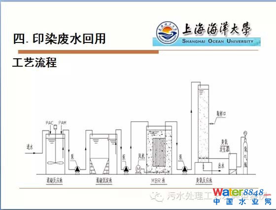 印染廢水回用有MBR、RO、高級(jí)氧化、吸附,MBR一般來說是個(gè)比較好的處理工藝,但是前段預(yù)處理一定要做好,否則水質(zhì)水量波動(dòng)大的話,膜污染問題比較難解決。