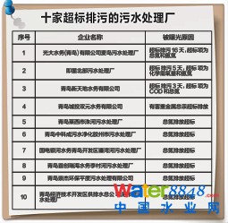 青島萊西市洙河污水處理廠、青島中科成污水凈化膠州市污水處理廠、國(guó)電銀河水務(wù)青島開(kāi)發(fā)區(qū)鐮灣河污水處理廠、青島首創(chuàng)瑞海水務(wù)李村河污水處理廠、青島崇杰環(huán)保平度污水處理有限公司、青島經(jīng)濟(jì)技術(shù)開(kāi)發(fā)區(qū)供排水總公司泥布灣污水處理廠等6家污水企業(yè)均檢出總氮排放超標(biāo)。