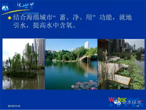 結合海綿城市的“滲、滯、蓄、用”功能,就地引水,提高水中含氧。