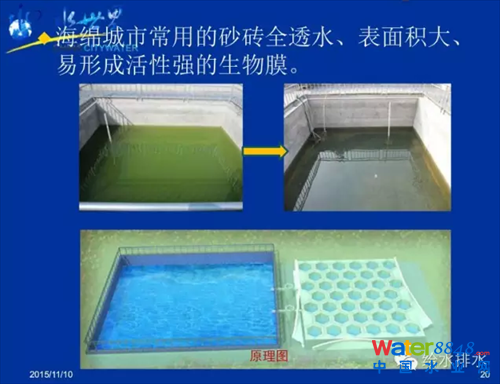 海綿城市常用的砂磚全透水、表面積大、已形成會性強的生物膜。