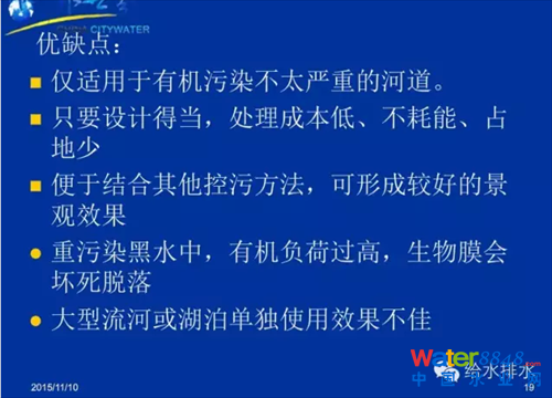 優(yōu)缺點:僅適用于有機污染不太嚴重的河道。