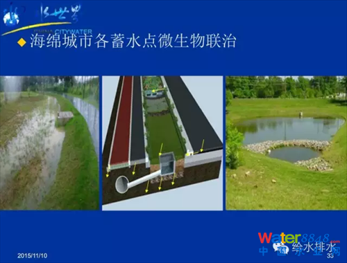 海綿城市建設能夠產生綜合效應,把生物治理從小水塘開始就分級投放,整個水體都可以進行生物處理,形成系統(tǒng)的生物鏈、生物膜、水面、水下綜合治理體系,能夠達到非常好的效果。