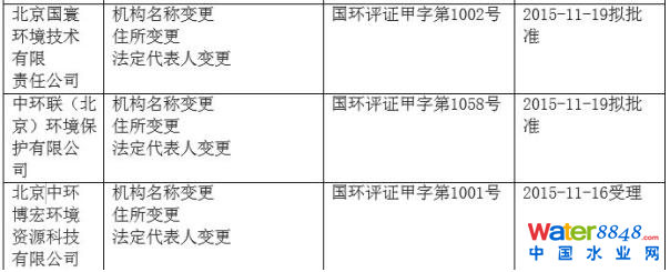 11月16日,環(huán)保部公示了部屬“紅頂”環(huán)評(píng)機(jī)構(gòu)——北京中環(huán)博宏環(huán)境資源科技有限公司(國(guó)環(huán)評(píng)證甲字第1001號(hào))的脫鉤申請(qǐng);11月19日,環(huán)保部發(fā)布消息稱,擬批準(zhǔn)2家部屬“紅頂”環(huán)評(píng)機(jī)構(gòu)——北京國(guó)寰環(huán)境技術(shù)有限責(zé)任公司、中環(huán)聯(lián)(北京)環(huán)境保護(hù)有限公司的脫鉤申請(qǐng)。