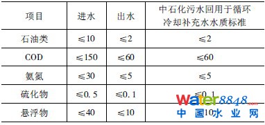 杭州某紡織有限公司主要從事氨綸經(jīng)編彈性織物的織造、染色加工及銷售,廢水排放量約為l200m3,d~,現(xiàn)有一套兼氧一好氧生化處理工藝,為了貫徹落實(shí)節(jié)能減排精神,企業(yè)提出生產(chǎn)廢水回用的思路,考慮到目前我國尚未制定印染廢水的回用標(biāo)準(zhǔn),根據(jù)企業(yè)建議并參考印染行業(yè)水質(zhì)標(biāo)準(zhǔn)[4],提出了本試驗(yàn)的再生回用水水質(zhì)。試驗(yàn)以企業(yè)現(xiàn)有污水處理設(shè)施的排放口出水為原水,試驗(yàn)進(jìn)水和出水水質(zhì)情況如表1所示。