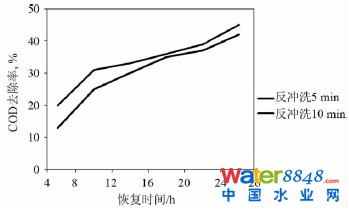圖6 不同反沖洗時間BAF 對COD 去除率對比