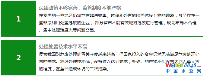 我國對危險(xiǎn)固體廢棄物的處理處置主要存在以下兩個問題。