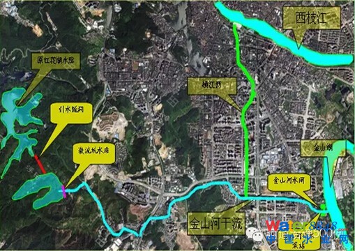 惠州市金山河發(fā)源于惠州西南面的立新村激流坑水塘,位于東江流域中下游的西枝江左岸。干流自西向東總長約7km,流入金山湖后匯入西枝江;從干流中游自南向北分出支流稱橫江瀝,總長約3.4km,流入西枝江。金山河流經(jīng)惠州主城區(qū),是惠州市中心區(qū)洪水的主要下泄通道,也是市中心區(qū)工業(yè)、生活污水的受納水體。
