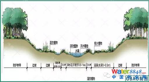 川北河水系空間設(shè)計根據(jù)河床演變規(guī)律,結(jié)合河道地勢,通過清淤和疏挖等造型措施調(diào)整,在深坑處形成深槽與水坑地形,在非主流區(qū)形成水灣地形,在寬闊水域形成江心洲,在窄槽處形成水淺流急的淺灘急流。在此基礎(chǔ)上,結(jié)合水位變化情況及水生動植物適水深度生物習性,配置適于深水區(qū)生長的沉水植物、適于淺水區(qū)和濱水區(qū)生長的挺水植物以及適于陸地生長的濕生植物。在深槽和水坑內(nèi)設(shè)置利于生物棲息與繁衍的多孔隙石島。通過河床上中下游、點線面、表中底立體空間的綜合塑造,形成自然河床形態(tài)的多樣性。