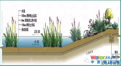 為節(jié)約水資源,在子槽河底及常水位以下部位采取必要的擬自然防滲措施。擬自然防滲采用有微滲功能的膨潤土防水毯材料,其與PE膜等其他防水材料相比,對河流生態(tài)系統(tǒng)與地下的物質(zhì)和能量交換的影響相對較小。為確保汛期雨水和上游來水迅速下滲,補充地下水,在非重點區(qū)域不作減滲處理,不進行補水,以減少水量消耗。
