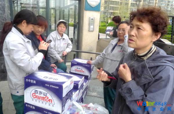 2014年4月11日,蘭州市自來水苯含量嚴(yán)重超標(biāo),圖為蘭州安寧一小區(qū)門口市民搶購礦泉水。東方IC 圖