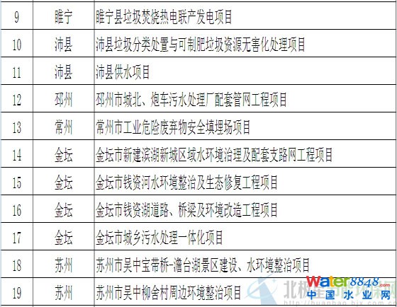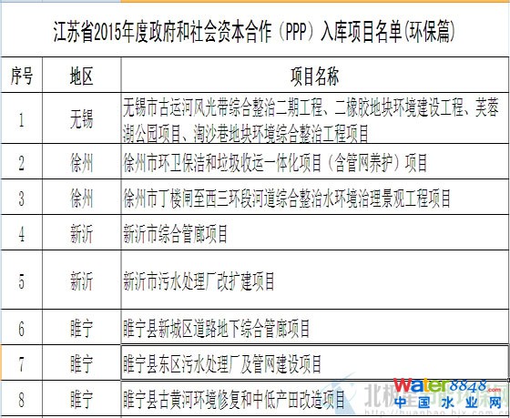 江蘇2015年度政府和社會資本合作(PPP)入庫項目(環(huán)保篇)