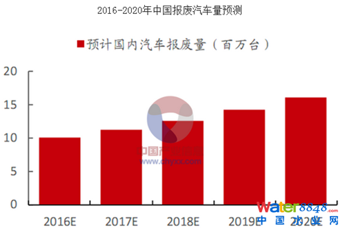 至2020年我國(guó)汽車保有量將達(dá)到2億輛水平。按照成熟市場(chǎng)報(bào)廢汽車占汽車保有量6-8%的水平來計(jì)算,2016年我國(guó)年報(bào)廢汽車量將達(dá)到900-1200萬輛,2020年將達(dá)到1200-1600萬輛,報(bào)廢量巨大。