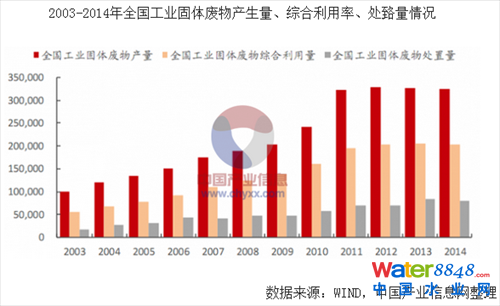 到2015年,我國(guó)工業(yè)固體廢物綜合利用率要達(dá)到72%。2014年,我國(guó)工業(yè)固廢產(chǎn)生量為32.6億噸,綜合利用量20.4億噸,綜合利用率62.75%。2011-2014年,我國(guó)工業(yè)固廢產(chǎn)生量復(fù)合增速為0.3%,以此推算2015年工業(yè)固廢產(chǎn)生量大約33.8億噸,按72%的綜合利用率計(jì)算,綜合利用量需達(dá)到24.3億噸,較2014年實(shí)際綜合利用率尚有高達(dá)3.9億噸的缺口。