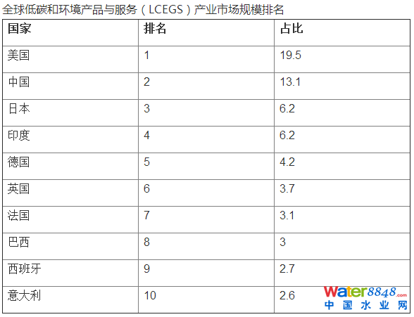 據(jù)博思數(shù)據(jù)發(fā)布的《2016-2020年中國環(huán)保產(chǎn)業(yè)市場分析與投資前景研究報(bào)告》表明:從地域分布看,全球廣義環(huán)保產(chǎn)業(yè)(包括低碳產(chǎn)業(yè)和可再生能源產(chǎn)業(yè))市場中亞洲占據(jù)的市場份額為38%;美洲和歐洲位居其后,分別占據(jù)30%和28%的市場份額。從廣義環(huán)保產(chǎn)業(yè)規(guī)模排名前十位的國家來看,處于發(fā)展中國家范圍內(nèi)的中國、印度和巴西分別位居第二、第四和第八位。