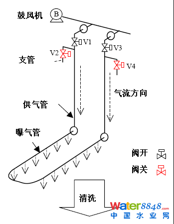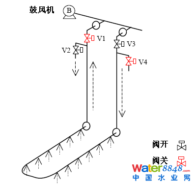 (b)一臺(tái)鼓風(fēng)機(jī)對(duì)多臺(tái)膜組件送風(fēng)時(shí),應(yīng)供給保證各個(gè)膜組件的空氣量相同。如果有嚴(yán)重的不同,請(qǐng)檢查管道構(gòu)造(接口管粗細(xì)等)和各送氣管情況,使送氣量達(dá)到一致。