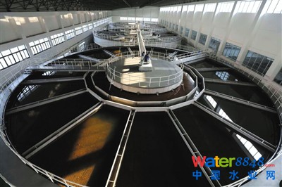昨日,北京郭公莊水廠(chǎng)機(jī)械加速澄清池內(nèi)正在過(guò)濾“南水”。楊益 攝
