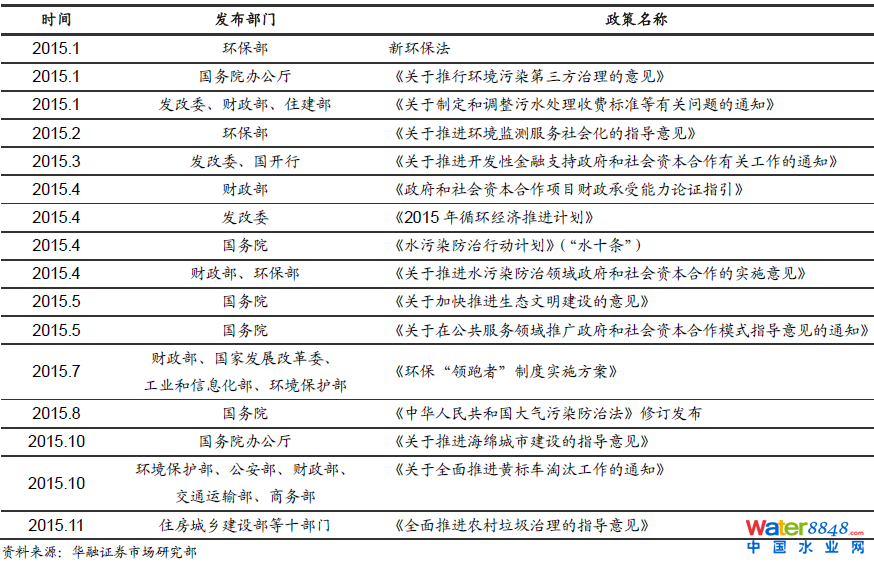 圖表4:2015 年出臺(tái)的部分環(huán)保政策(截至2015.11)