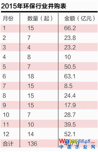 分析人士指出,2015年,隨著“新環(huán)保法”的正式實(shí)施,國家部委又下發(fā)了近20條環(huán)保政策,涵蓋了水、大氣、垃圾處理、環(huán)境監(jiān)測、第三方環(huán)境治理以及政府和社會資本合作等領(lǐng)域。這些利好政策無疑推動了環(huán)保行業(yè)的兼并重組。