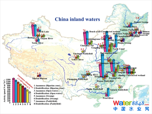 目前人類活動(dòng)對(duì)氮循環(huán)的干擾,已遠(yuǎn)大于其他元素,極大地加速了地球生態(tài)環(huán)境的變化,引發(fā)嚴(yán)重的氮循環(huán)失衡、氮污染加劇、溫室氣體排放增多等不良效應(yīng)。據(jù)估算,全球只有約40-60%的氮是通過(guò)反硝化生成氮?dú)饣氐酱髿庵。在全球變暖、污染加劇的雙重脅迫下,是否存在新型的氮循環(huán)過(guò)程,值得我們探究。厭氧氨氧化反應(yīng)的發(fā)現(xiàn)就是一個(gè)明例。厭氧氨氧化是在厭氧條件下由厭氧氨氧化菌以亞硝酸鹽作為電子受體將氨氮直接氧化為氮?dú),避免了?qiáng)效溫室氣體氧化亞氮的產(chǎn)生,并完成封閉的產(chǎn)氮?dú)庋h(huán)。 中科院生態(tài)環(huán)境中心祝貴兵研究組在前期發(fā)現(xiàn)白洋淀葦?shù)?/span>-溝壕系統(tǒng)的水陸交錯(cuò)帶存在厭氧氨氧化反應(yīng)熱區(qū)之后,提出猜想:兩相物質(zhì)的交界面,特別是缺氧-好氧界面,很可能發(fā)生著廣泛的厭氧氨氧化反應(yīng)。 首先,祝貴兵研究組與朱永官研究員合作,在微米、厘米的尺度上證明缺氧-好氧界面發(fā)生著廣泛的厭氧氨氧化反應(yīng)。采集典型水稻根際和非根際土壤,應(yīng)用CARD-FISH、qPCR和同位素示蹤的方法,證明水稻根際土壤發(fā)生顯著的厭氧氨氧化反應(yīng),產(chǎn)生的氮?dú)饬空伎偵闪康?/span>30-40%,而非根際土壤產(chǎn)生的氮?dú)饬績(jī)H占總氮?dú)馍闪康?/span>2-3%,證明了在微米、厘米尺度的水稻根際土壤中,發(fā)生顯著的厭氧氨氧化反應(yīng)。論文發(fā)表于The ISME Journal。 在上述小尺度驗(yàn)證之后,祝貴兵研究組擴(kuò)大研究地點(diǎn),在全國(guó)范圍進(jìn)行大尺度驗(yàn)證,同時(shí)也估算厭氧氨氧化反應(yīng)對(duì)我國(guó)水生態(tài)系統(tǒng)氮循環(huán)的貢獻(xiàn)。 通過(guò)對(duì)10種來(lái)自40個(gè)不同地區(qū)256個(gè)樣品進(jìn)行大規(guī)模取樣研究發(fā)現(xiàn)證實(shí),厭氧氨氧化反應(yīng)在陸地水生態(tài)系統(tǒng)是無(wú)處不在的,甚至在一些極端環(huán)境下,例如高溫(大于75℃)、低溫(低于-25℃)、高pH值(大于9)、低pH值(小于4)、富營(yíng)養(yǎng)化和寡營(yíng)養(yǎng)鹽的不同水體,都發(fā)生著厭氧氨氧化反應(yīng)。厭氧氨氧化反應(yīng)主要發(fā)生在表層沉積物50cm以上區(qū)域,并對(duì)氮循環(huán)起重要作用。相比于河流系統(tǒng),湖泊發(fā)生著更加顯著的厭氧氨氧化反應(yīng),反應(yīng)速率是河流中厭氧氨氧化反應(yīng)速率的數(shù)量級(jí)倍數(shù),其中湖泊岸邊帶是整個(gè)水生態(tài)系統(tǒng)厭氧氨氧化反應(yīng)的熱區(qū)。厭氧氨氧化反應(yīng)在稻田系統(tǒng)的廣泛發(fā)生,補(bǔ)充了土壤生態(tài)系統(tǒng)氮循環(huán)理論體系,為我國(guó)稻田系統(tǒng)氧化亞氮(N2O)釋放量的精確計(jì)算提供科學(xué)借鑒。在沼澤濕地中厭氧氨氧化反應(yīng)的廣泛發(fā)生,將我們對(duì)厭氧氨氧化反應(yīng)發(fā)生條件的認(rèn)識(shí),從傳統(tǒng)的高氮低碳環(huán)境,拓展到高碳低氮環(huán)境,并結(jié)合各種濕地和水生態(tài)系統(tǒng)的面積,推算由厭氧氨氧化反應(yīng)產(chǎn)生的氮流失量(2.0TgNyr-1)占總量的11.4%,論文發(fā)表于Scientific Reports和Environmental Microbiology Reports。 同時(shí),祝貴兵研究組對(duì)與厭氧氨氧化菌共生的功能微生物如氨氧化古菌(ammonia oxidizing archaea, AOA)和反硝化厭氧甲烷氧化菌(nitrite-dependent anaerobic methane oxidization, N-DAMO)也進(jìn)行了相關(guān)研究,論文發(fā)表于Scientific Reports和Environmental Microbiology Reports。 以上結(jié)果對(duì)我國(guó)氧化亞氮的通量計(jì)算、全球氣候變化模型和氮循環(huán)通量產(chǎn)生重要影響。以往對(duì)氧化亞氮通量的計(jì)算,都是基于模型和化肥施加量以及部分樣點(diǎn)的實(shí)測(cè)值,均沒(méi)有考慮厭氧氨氧化的功效。因此,國(guó)家尺度上的氧化亞氮釋放通量很可能要小于目前的估算值。 厭氧氨氧化反應(yīng)在我國(guó)內(nèi)陸水體的分布及其在不同水體和濕地中的貢獻(xiàn),包括河流(a)、湖泊(b)、稻田(c)和沼澤(d) 相關(guān)論文: 1. San’an Nie, Hu Li, Xiaoru Yang, ZhaoJi Zhang, Fuyi Huang, Guibing Zhu*, Yong-Guan Zhu* Nitrogen loss by anaerobic oxidation ammonium in rice rhizosphere. The ISME Journal. 2015. 9, 2059–2067 2. Guibing Zhu*, Shanyun Wang, Leiliu Zhou, Yu Wang, Siyan Zhao, Chao Xia, Weidong Wang, Rong Zhou, Chaoxu Wang, Mike S. M. Jetten, Mariet M. Hefting, Chengqing Yin, Jiuhui Qu. Ubiquitous anaerobic ammonium oxidation in inland waters of China: an overlooked nitrous oxide mitigation process. Scientific Reports. 11/2015; 5:17306. DOI:10.1038/srep17306 3. Leiliu Zhou, Shanyun Wang, Yuxuan Zou, Chao Xia, Guibing Zhu*. Species, Abundance and Function of Ammonia-oxidizing Archaea in Inland Waters across China. Scientific Reports.?11/2015; 5:15969. DOI:10.1038/srep15969 · 4. Guibing Zhu*, Leiliu Zhou, Yu Wang, Shanyun Wang, Jianhua Guo, Xi-En Long, Xingbin Sun, Bo Jiang, Qiaoyun Hou, Mike S M Jetten, Chengqing Yin. Biogeographical distribution of denitrifying anaerobic methane oxidizing bacteria in Chinese wetland ecosystems. Environmental Microbiology Reports. 2014. DOI: 10.1111/1758-2229.12214. 5. Guibing Zhu* ·?Chao Xia?·?Shanyun Wang?·?Leiliu Zhou?·?Lu Liu?·Siyan Zhao?·Occurrence, activity and contribution of anammox in some freshwater extreme environments. Environmental Microbiology Reports. 2015. 7(6), 961–969 環(huán)