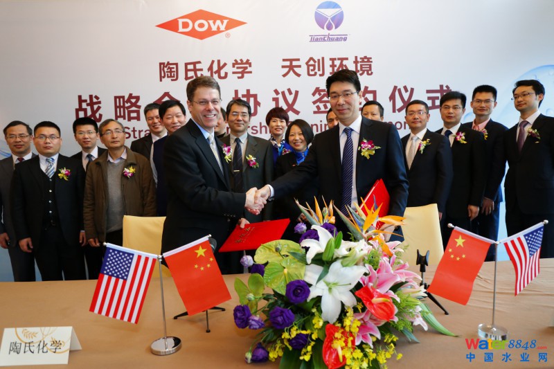 陶氏是膜技術(shù)的全球領(lǐng)導(dǎo)者,天創(chuàng)是致力于水資源循環(huán)利用整體解決方案研究與應(yīng)用的高新技術(shù)環(huán)保型企業(yè)。此前,陶氏與天創(chuàng)有著長達(dá)十余年的業(yè)務(wù)合作,主要集中在工業(yè)水處理領(lǐng)域,包括工業(yè)純水、工業(yè)中水和污水回用處理、特種膜處理等。此次《戰(zhàn)略合作伙伴協(xié)議》的簽訂將雙方的合作進(jìn)一步延展至市政水處理和大型工業(yè)污水回用市場。雙方將利用各自的優(yōu)勢,進(jìn)行商務(wù)合作模式的探索和創(chuàng)新,向中國市場提供更高效、更經(jīng)濟(jì)的市政飲用水凈化和污水回用解決方案。