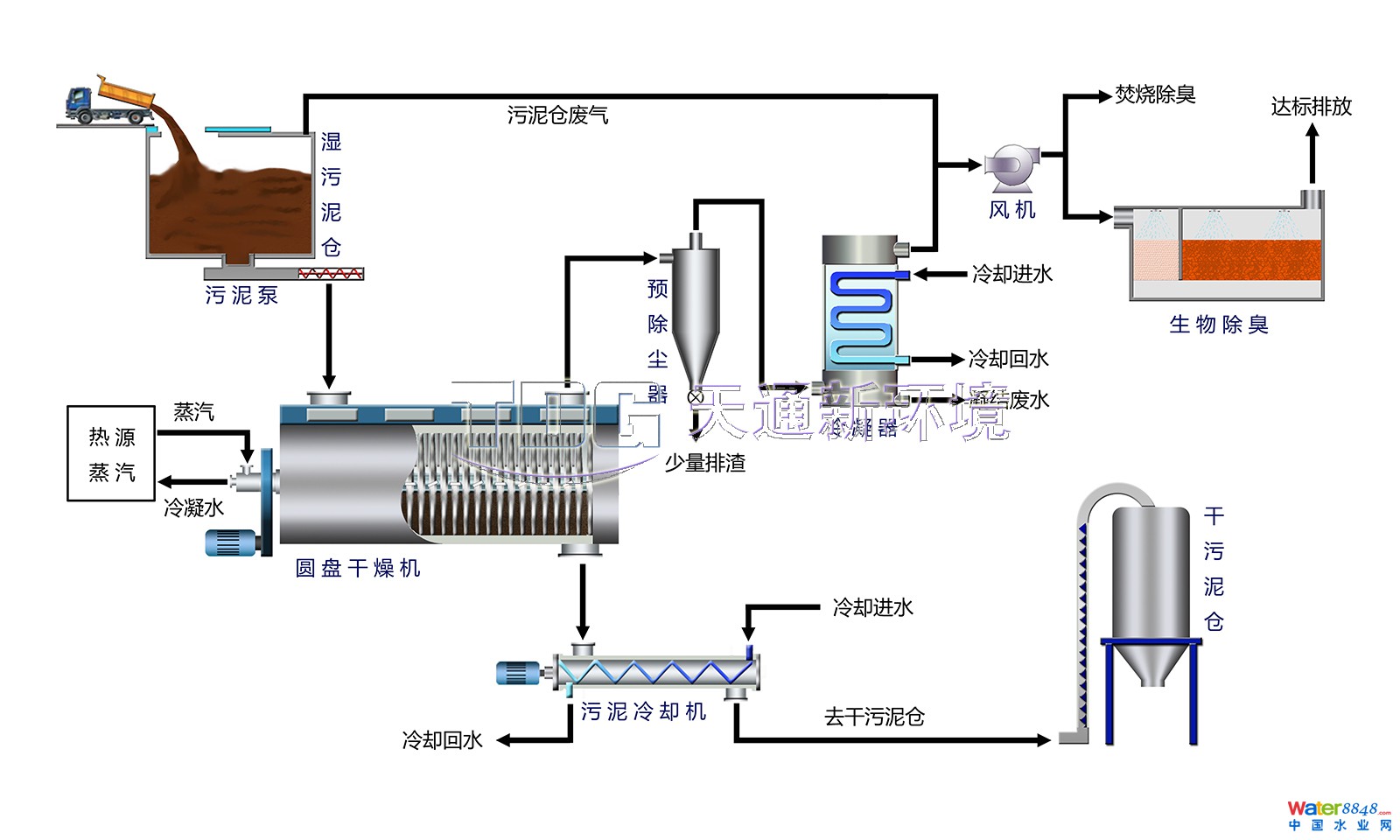 圓盤式污泥干化工藝系統(tǒng)流程短,既可全干化,也可半干化,無(wú)須返混,可靠性高,安全性高。