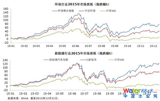受益于政策利好和行業(yè)高成長(zhǎng)性的支撐,環(huán)保板塊受到資本市場(chǎng)熱捧,2015年超額收益明顯,環(huán)保概念指數(shù)及中證環(huán)保指數(shù)均跑贏滬深300指數(shù),但其波動(dòng)率也高于大盤,相對(duì)彈性較大。此外,新能源汽車表現(xiàn)也強(qiáng)于大市。