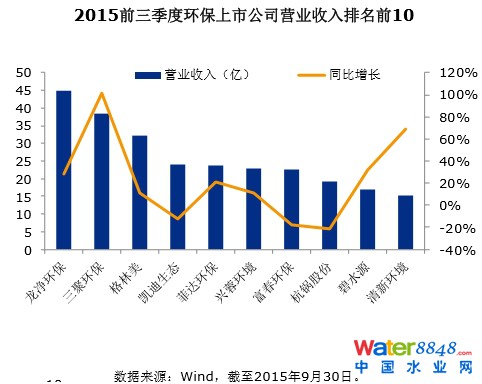 回顧2015年,環(huán)保行業(yè)業(yè)績(jī)顯著提升,已發(fā)布三季報(bào)的環(huán)保上市公司業(yè)績(jī)靚麗。2015年前三季度,碧水源、三聚環(huán)保、清新環(huán)境等多家環(huán)保企業(yè)保持高增長(zhǎng)的勢(shì)頭,營(yíng)業(yè)收入同比大幅增長(zhǎng)。在已發(fā)布三季報(bào)的31家環(huán)保上市公司中,近9成凈利潤(rùn)遠(yuǎn)高于歷年同期水平。