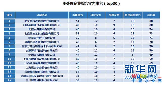 圖為,《中國水處理企業(yè)排名》水處理企業(yè)總排名前15名企業(yè)名單