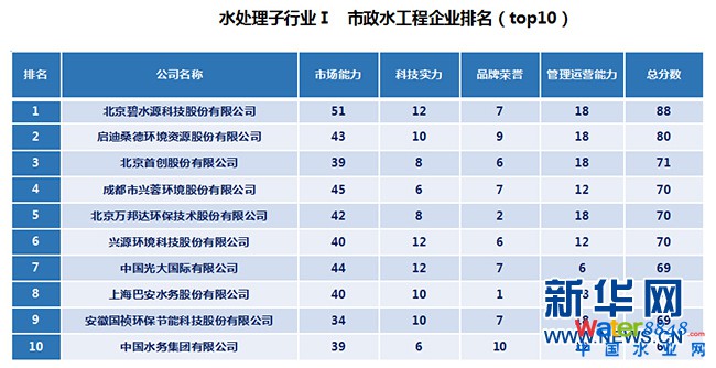 圖為,《中國水處理企業(yè)排名》水處理子行業(yè)I市政水工程企業(yè)排名(top10)