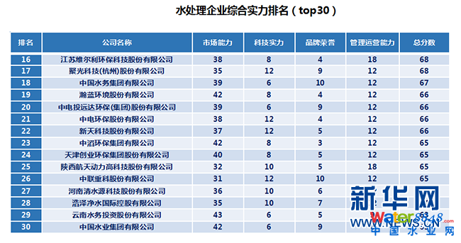 《中國水處理企業(yè)排名》榜單出爐