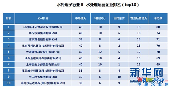 圖為,《中國水處理企業(yè)排名》水處理子行業(yè)Ⅱ水處理運(yùn)營企業(yè)排名(top10)