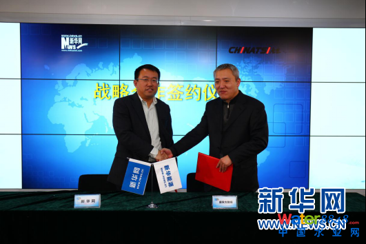 圖為,新華網(wǎng)能源與環(huán)保事業(yè)部總監(jiān)宋世恩與唐宋大數(shù)據(jù)副總經(jīng)理馬強(qiáng)簽約