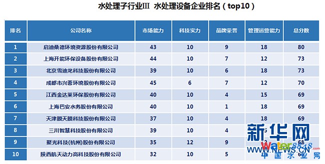 圖為,《中國水處理企業(yè)排名》水處理子行業(yè)III水處理設(shè)備企業(yè)排名(top10)