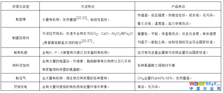 表1 污泥資源化應(yīng)用特點(diǎn)