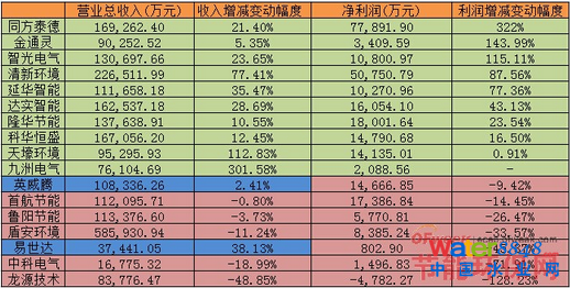 國(guó)內(nèi)節(jié)能上市公司業(yè)績(jī)情況