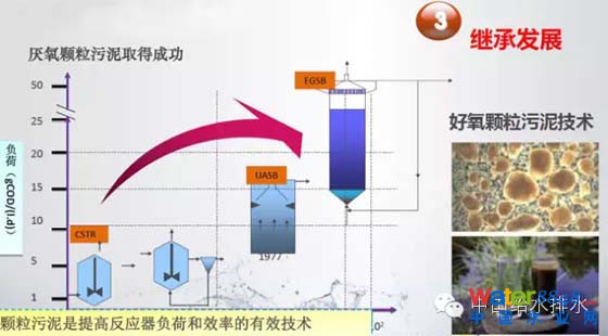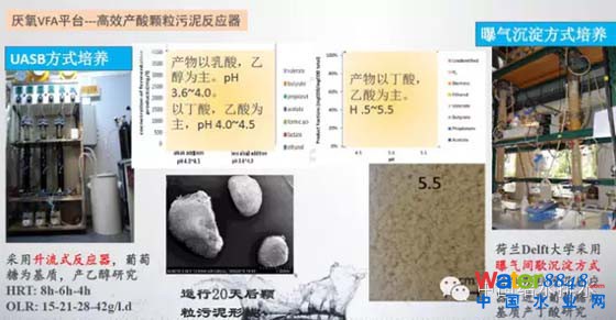 第三點(diǎn)厭氧顆粒污泥取得成功,顆粒污泥是提高反應(yīng)器和效率的有效技術(shù)。怎么提高效率,我們實(shí)際上剛才在低PH下不同負(fù)荷的圖可以看出來,在高負(fù)荷下效率是下降的,所以整個(gè)提高效率其中之一是產(chǎn)酸的情況下能不能形成顆粒污泥。