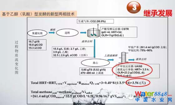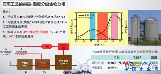 它應(yīng)該說簡(jiǎn)化了流程,45度之后直接進(jìn)入了中溫厭氧之后,不需要再額外的加熱的系統(tǒng),而美國(guó)提的高溫的東西、冷卻換熱等等系統(tǒng)比較復(fù)雜,通過我們的效果大家來看,這組數(shù)據(jù)甲烷的產(chǎn)率提高比較大,中溫的消解率也比較提高。我想這是針對(duì)水解酸化做的一些工作。