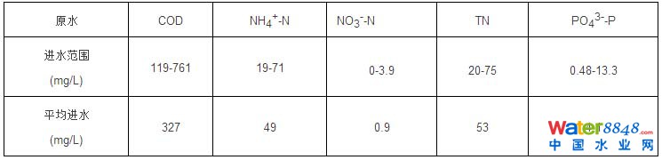 進(jìn)水水質(zhì)見表1,去除率見表2