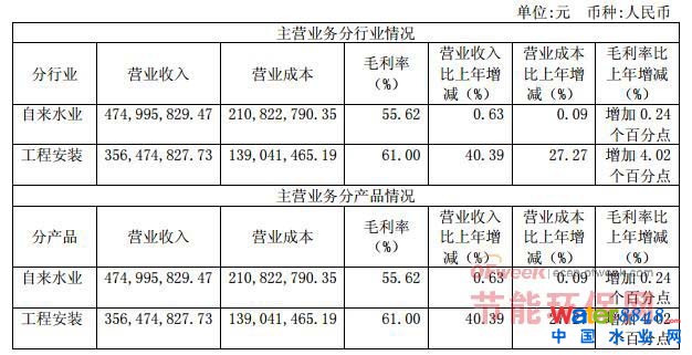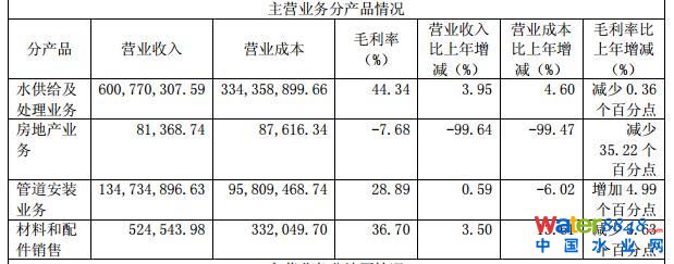 分產(chǎn)品來看,管道安裝業(yè)務(wù)及材料配件銷售業(yè)務(wù)有所增長。