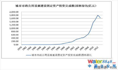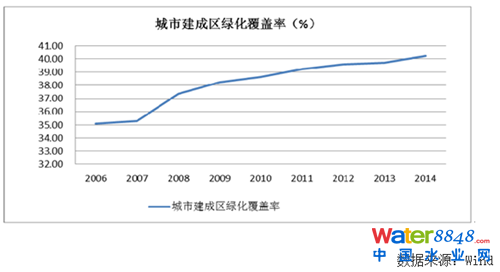 隨著我國城鎮(zhèn)化進程的推進,城市景觀建設投資規(guī)模不斷擴大,2000 年城市園林綠化固定資產(chǎn)投資額僅為 143.20 億元,2013 年已達到 1,647.40 億元,年均增長率在 20%以上。在固定資產(chǎn)投資推動下,我國城市建成區(qū)綠化覆蓋率由2006 年的 35.11%增加到 2014年的40.22%。