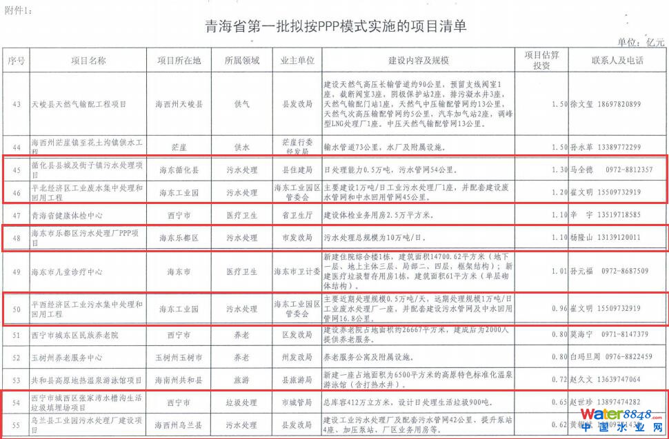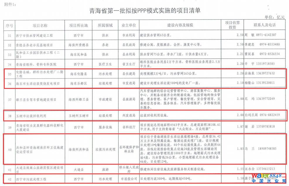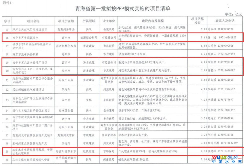 近日, 從青海省財政廳獲悉,青海省第一批入庫PPP項目已經(jīng)公示。青海首批入庫PPP項目共66個,其中涉及多個環(huán)保項目,包括污水處理、垃圾處理等多個項目。具體內(nèi)容如下: