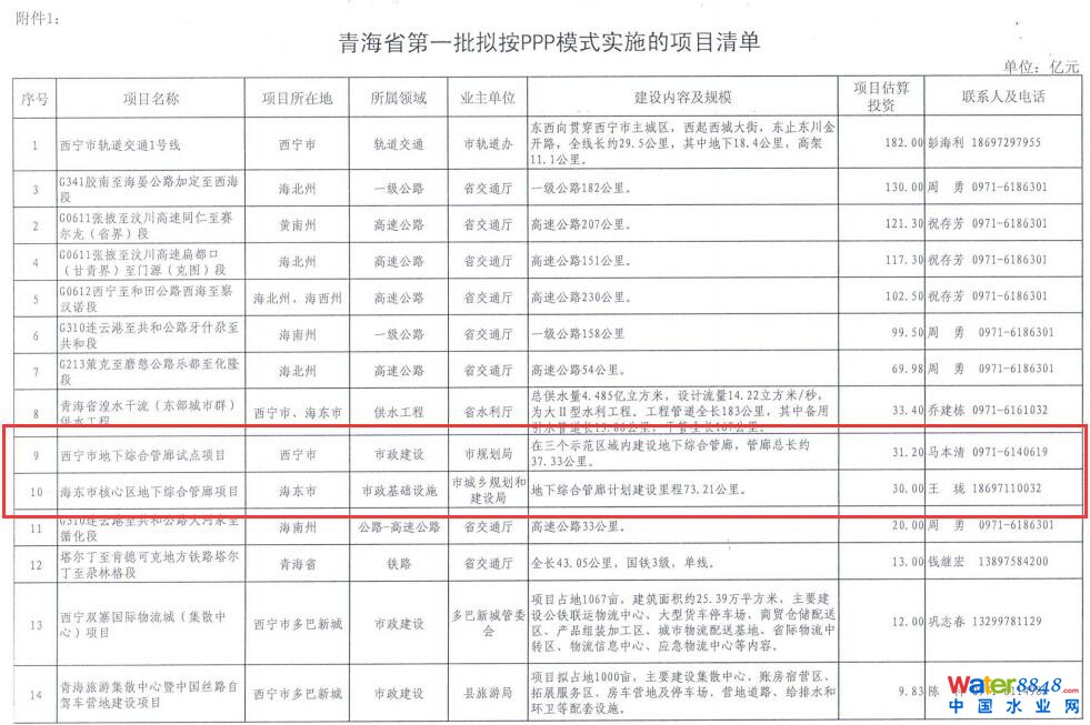 青海省財政廳關于青海省第一批入庫PPP項目公示