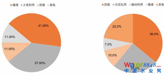 截至2014年底,全國(guó)污水處理廠產(chǎn)生的污泥無(wú)害化處置率僅為56%,主要處置方式為衛(wèi)生填埋、焚燒、制肥、制造建材。余下的污泥中,約三分之一采用“臨時(shí)手段”處置,剩余污泥去向不明。