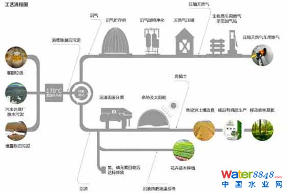 2011年,湖北襄陽市為了解決污泥造成的惡臭和水污染問題,保障南水北調(diào)工程水源安全,選擇了“高溫水解+高濃度厭氧消化+甲烷捕獲利用”技術(shù)路線對污泥和餐廚垃圾進行協(xié)同處理,經(jīng)過兩年多的嘗試,取得了很好的效果。不僅實現(xiàn)了襄陽市每天新增污泥的全部處置,還逐步消納了堆置的陳舊污泥,實現(xiàn)了“污泥全消納、能量全平衡、資源全回收、過程全綠色、費用可接受”的多效目標,探索出了一條有效的污泥資源化途徑。