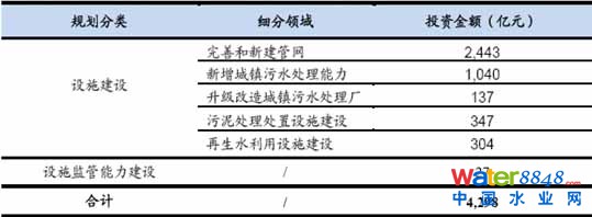 “十二五”時(shí)期城鎮(zhèn)污水處理及再生利用設(shè)施建設(shè)投資