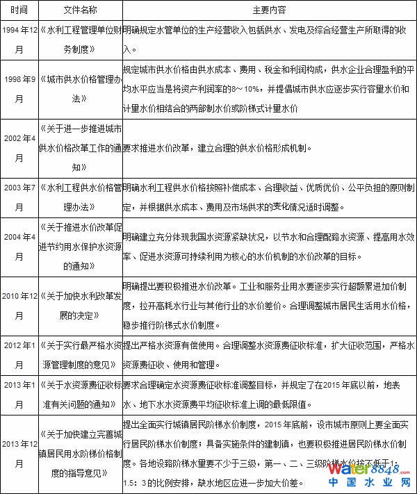 我國(guó)水價(jià)改革主要政策文件