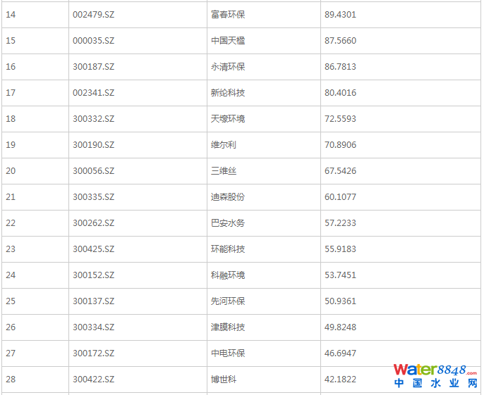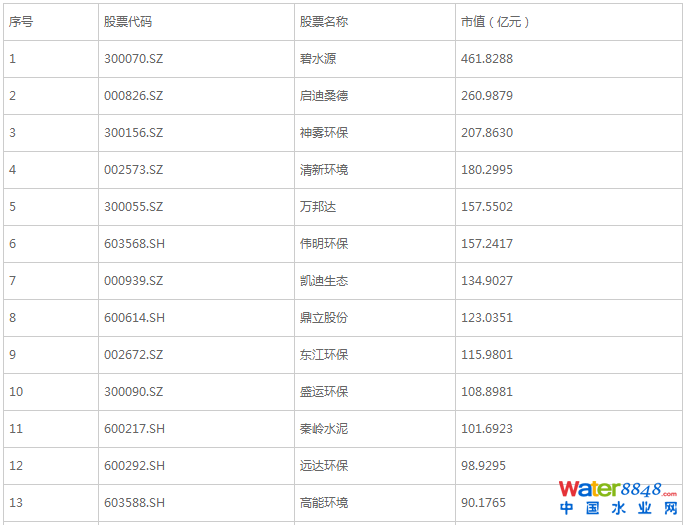 2016上半年環(huán)保行業(yè)上市公司市值排行榜